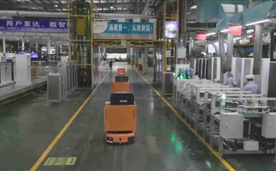 为车载冰箱物流配送打造的智能解决方案,,,包含产中物流通过潜伏举升AMR搬运至线边,,,产后成品物流智能仓储,,流程包含产中物流智能齐套入库,,线边安灯叫料AMR智能配送至线边,,,成品入库、、、出库,,,通过无人堆高车机器人,,智能仓储管理替代人工作业管理,,,实现更高存储、、、更高效率、、、更具柔性化的解决方案。。。。