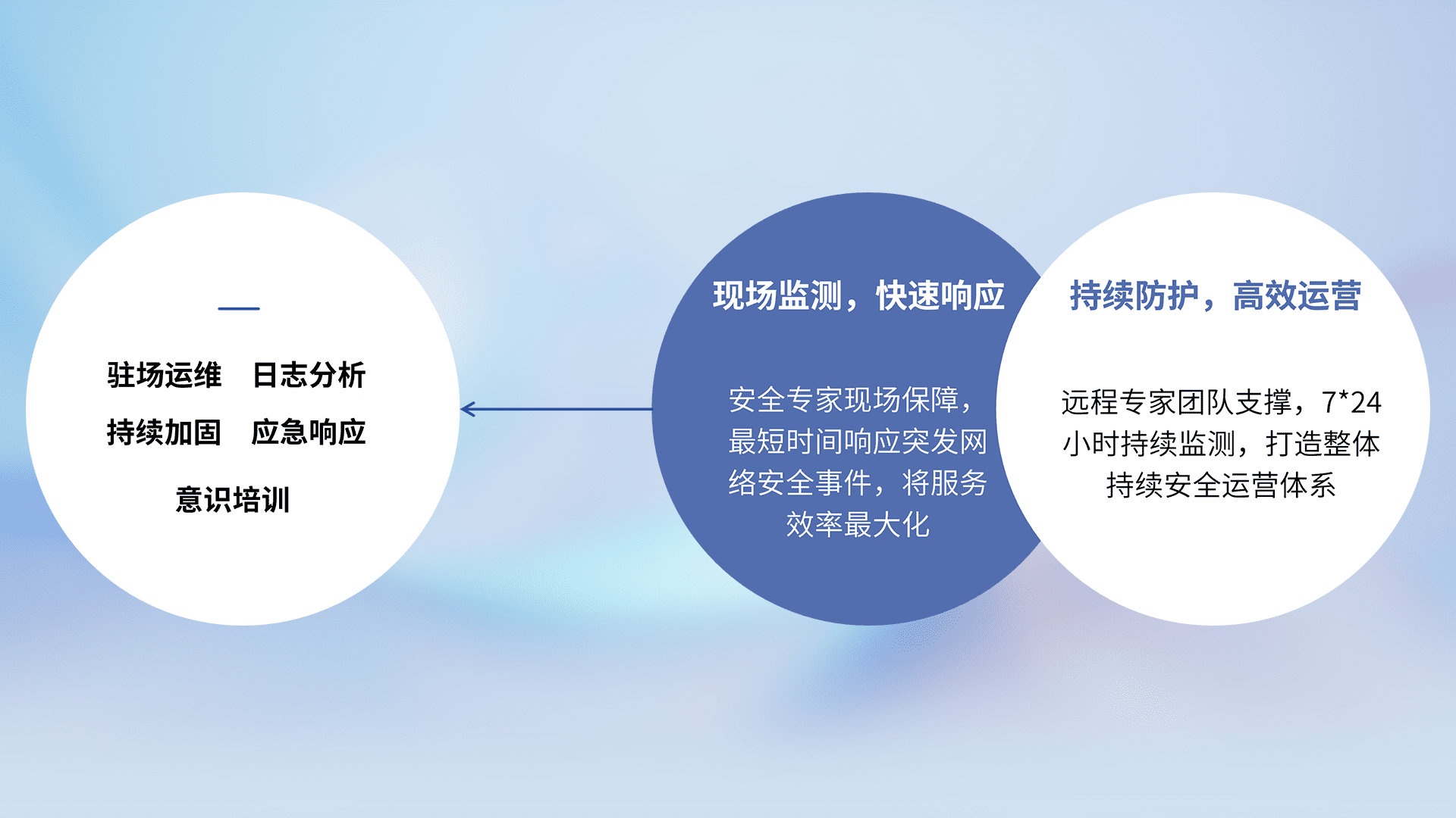 针对客户行业特性,,,提供专属的一站式安全管理服务,,,帮助客户全面感知网络空间威胁,,通过安全专家的线上、、线下防护支持,,,,实现风险闭环,,,,将安全保障常态化,,,,为客户打造常态化安全运维运营服务。。。。